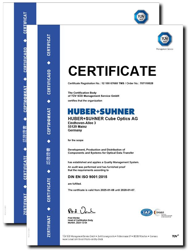 HUBER+SUHNER Cube Optics is a proud member of the Optence e.V.