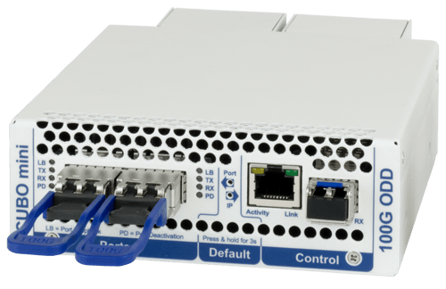 The CUBOmini 100G ODD is a new and much simpler approach to 100G optical services. Depending on the combination of QSF28 transceivers, the CUBOmini 100G ODD can be used for countless, different applications. The CUBOmini is auto-sensing and requires no configuration to have an up and running fiber link.