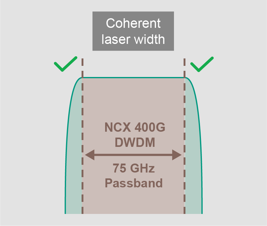 Latest technology for 100GHz DWDM multiplexer with 75GHz passband enabling 400G coherent transceiver support.